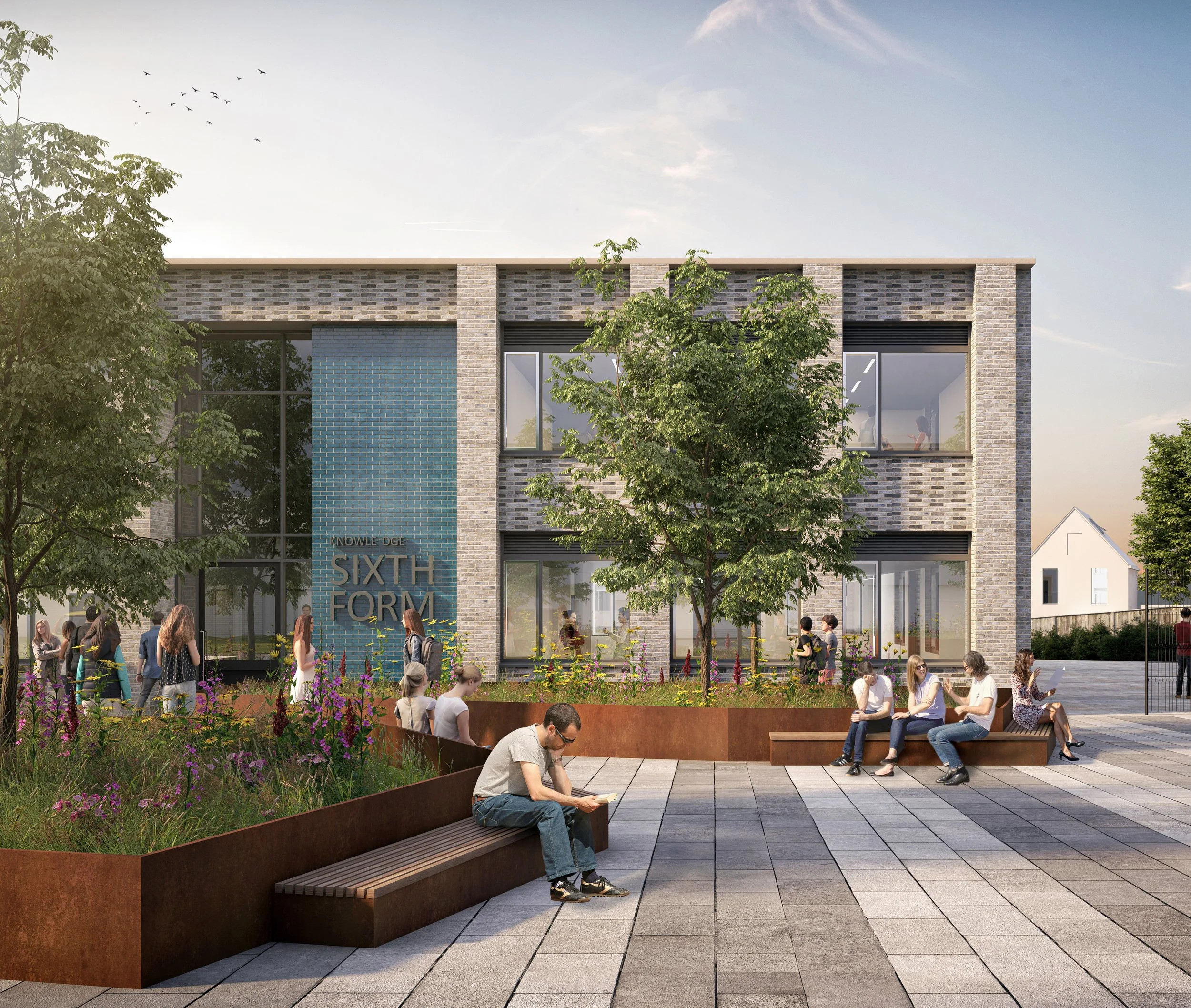 Knowle DGE is a specialist Academy for young people with additional needs situated in Knowle, South Bristol. The scheme expands its facilities with a sixth form building and two independent living homes. The new post-16 centre will accommodate 40 students, with specialist workshops for construction, mechanics, science, food technology, textiles and life skills. .